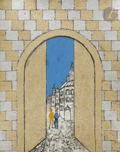 Papeteries de Navarre, illustrée de plus de 100 gouaches reproduites hors texte de la peintre POUCETTE (1935-2006), appelée « la petite reine des artistes de Saint-Germain-des-prés. ». Un des 26 exemplaires lettrés de A à Z, celui-ci portant la lettre K.. Précieux exemplaire enrichi de 45 gouaches originales signées par l’artiste, ayant servi à l’illustration de l’ouvrage. Au verso se trouve retranscrit le passage que la peinture représente, certainement écrit de la main de Poucette.. Exemplaire parfaitement conservé dans ses cartons d’origine.