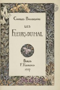 ROCHEGROSSE (Georges) - BAUDELAIRE (Charles).. Les Fleurs du mal.. Paris : A. Ferroud, F. Ferroud successeur, 1917. — In-8, 186 x 125 : (4 ff.), 311 pp., 2 planches, couverture illustrée. Maroquin vert, filet doré en bordure des plats, dos à...
