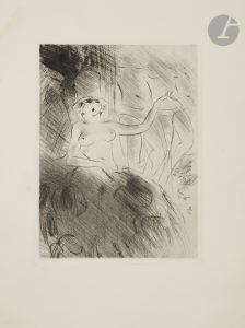 rempliée, chemises et étui de l’éditeur.. . Belle édition illustrée de 43 pointes sèches originales de Marcel VERTÈS (1895-1961), dont 16 hors texte.. Le tirage mentionné est de 95 exemplaires. Celui-ci est un exemplaire hors commerce sur papier de Hollande, hors justification, spécialement imprimé pour le peintre et graveur Jean Gabriel Daragnès. Il a été enrichi de 2 planches refusées avec remarques, d’une suite de 45 pointes sèches sur japon, comprenant les 43 figures du livre et 2 supplémentaires, d’une suite de 44 pointes sèches avec remarques sur Hollande, les mêmes que pour la suite sur japon mais sans la vignette de la table, et d’une suite de 17 gravures en premier essais à l’eau-forte.. Chemise des suites très abîmés.