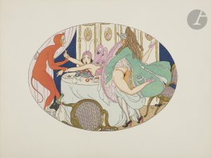 WEGENER (Gerda) - VÉRINEAU (Alexandre de) speudonyme de Louis PERCEAU.. Douze Sonnets lascifs pour accompagner la suite d’aquarelles intitulée Les Délassements d’Éros.. Érotopolis : à l’enseigne du faune [Paris : Maurice Duflou], 1925....