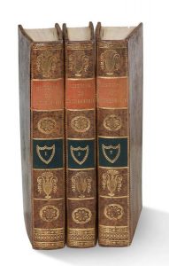 CASTÉRA (Jean Henri) Histoire de Catherine II, Impératrice de Russie. Paris, F. Buisson, An VIII de la République [1800]. 3 volumes in-8, basane fauve, dos lisse orné, roulette dorée sur les coupes (Reliure de l'époque)..Orné de 16 portraits...