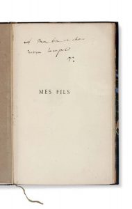 HUGO (Victor) Mes fils. Paris, Michel Lévy, 1874..In-8, demi-maroquin bleu nuit à coins, dos lisse orné, couverture conservée (Reliure Dodé)..Édition originale enrichie sur le faux-titre d'un envoi signé de Victor Hugo à «mon bon et cher...
