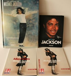 Ensemble de 4 ouvrages sur Michael JACKSON : 1. Adieu L'Artiste 1958-2009, Préface de Marc Ysaye, Ciné Télé Revue (2 exemplaires), 2. JACKSON : Music Icons, éditions TASCHEN, 2009, 3. Les Trésors de Michael JACKSON, Souvenirs et Photos du Roi...