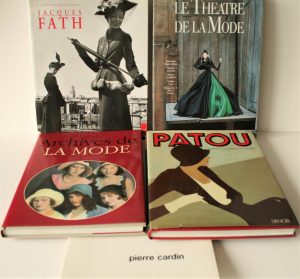 1. Jacques BORGE & Nicolas VIASNOFF : Archives de la Mode, 1995, 2. Meredith ETHERINGTON-SMITH : PATOU, 1984, 3. Le Théâtre de la Mode, éditions Du May, 1990, 4. Valérie GUILLAUME : Jacques FATH, 1993, 5. Invitation à l'exposition Pierre CARDIN...