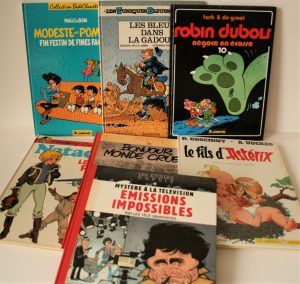 François WALTHERY : Natacha, Le grand pari, chez Dupuis, édition originale, 1985, 5. TURK & De GROOT : Robin Dubois, 10 Négoce en Ecosse, Chez Lombard, édition originale de 1985, 6. Willy LAMBIL & Raoul CAUVIN : Les tuniques Bleues 13 Les bleus dans la gadoue, chez Dupuis, 1984, 7. WALLI & BOM : Modeste et Pompon 1 Fin festin de fines facéties, Chez Lombard (Bédé Chouette), édition originale, 1985