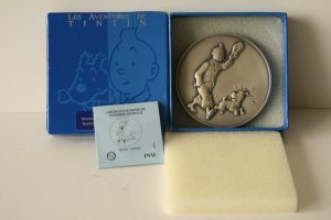 Hergé - Presse papier en argent 800 de la Monnaie Royale de belgique (1993), tirage limité à 1.000 exemplaires, boîte et certificat - Poids : 250 g