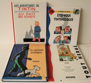 Ensemble de 4 ouvrages sur HERGé : 1. Benoît PEETERS : Le monde d'Hergé, Casterman, 1990, 2. Stephane STEEMAN : Itinéraire d'un collectionneur chanceux, Casterman, 1991, 3. Êtes-vous Tintinologue, Casterman, 1992, 4. Les aventures de Tintin au...