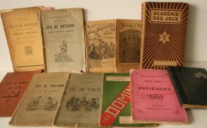 Ensemble de 10 livres de jeux pour enfant fin XIXe-Début XXe : Patiences, Dominos, Whist, Bésigue, Tric-trac … + BONNEVEINE : Tours de cartes 1879