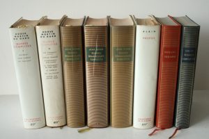 Ensemble de 8 livres de La Pléiade, sans emboîtage : 1. Roger MARTIN du GARD : Œuvres Complètes Tome I & II 1955, 2. Jean GIONO : Œuvres romanesques complètes Tome I & 2 & 3 1973, 6. ALAIN : Propos 1956, 7. PASCAL : Œuvre 1950, 8. Choderlos de...