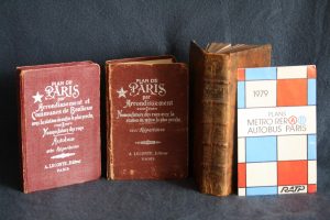 (troisième édition) - In-12 plein veau, dos à nerfs orné de fleurons et titre doré sur pièce de titre rouge, tranches rouges, orné des 5 planches (2 dépliantes) dont une en couleur en frontispice. Quelques frottements mais reliure bien conservée et propre / ‎2 guides de Paris : Plan de Paris par Arrondissement. Nomenclature des Rues avec la station du métro la plus proche avec Repertoires, édité par Leconte, 1946 & Plan de Paris par Arrondissement et communes de Banlieue. Nomenclature des Rues avec la station du métro la plus proche, Autobus avec Repertoires, édité par Leconte, 1961 + un plan du RER (A et B) de 1979