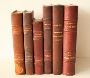 chez Alphonse Lemerre, 4. Poésies de Alfred de VIGNY, Lyon chez Lardanchet, 1922, exemplaire hors commerce, 5. Alfred de VIGNY : Servitudes et grandeur militaires, Lyon chez Lardanchet, 1913, relire signée KAUFFMAN-HORCLOIS, 6. Gérard de NERVAL : Les filles de feu, Lyon chez Lardanchet, 1914, reliure signée Ch. SEPTIER
