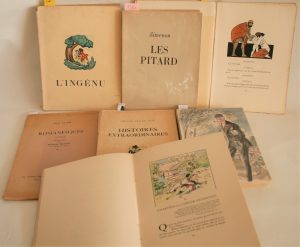 sur vélin de Lana, 3. Max JACOB : Romanesques, 1856, 4. ARISTOPHANE : Lysistrata, édition illustré d'aquarelles de Carlège, à Paris, Georges Briffaut éditeur, 1928, 5. Edgar Allan POË : Histoires extraordinaires, illustrations de Edmond-Maurice Pérot, 1940, 6. VOLTAIRE : L'ingénu, Editions de la bonne étoile, Paris, illustrations de Berthommé Saint-André, ca 1950, 7. SIMENON : Les pitard, collection Mazarine, illustrations de Robert Joël, 1945
