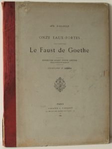 Cartonnage tiré à 50 exemplaires (ici le 37) comprenant les 11 Eaux-Fortes pour illustrer le Faust de Goethe, épreuves avant toute lettre, à Paris, Librairie Conquet, 1880, de toute rareté