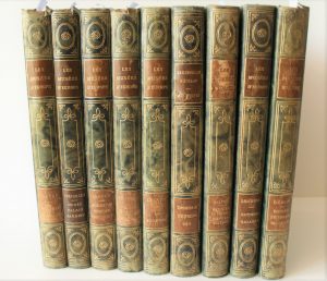 Gustave GEFFROY : Collection de 9 volumes de la collection "Les musées d'Europe" aux éditions Nilsonn [ca 1920], 1/2 reliure, dos ornés avec les titres : Le Louvre La Sculpture (42 + 152 illustrations), Florence Les Offices (42 + 184...
