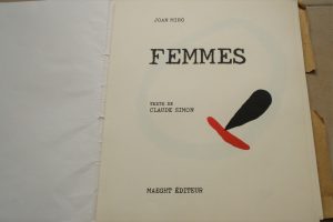 JOAN MIRÓ (1893-1983) : FEMMES, 1965, Texte de Claude Simon Album comprenant trois bois gravés et 23 estampes en planches séparées d'après trois séries de peintures de 1959 à 1960 intitulées Femme, Femme assise et Femme et oiseau (manque le...