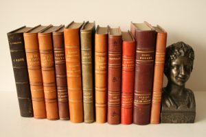 Ensemble de 11 sous reliure 1/2 cuir, dos à 4 nerfs : 1.Jules LAMAITRE : Jean Racine (Calmann Lévy), 2. Georges DUHAMEL : Vue de la Terre promise 1934 (envoi autographe de l'auteur), 3. Georges DUHAMEL : La nuit de la Saint Jean 1935 (envoi...