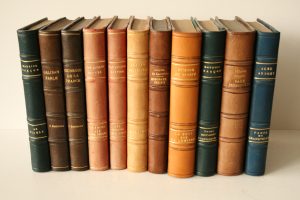 Ensemble de 11 sous reliure 1/2 cuir, dos à 4 nerfs : 1. Jacques de LACRETELLE : Morceaux choisis 1938 (envoi autographe de l'auteur), 2. Etienne de GREEFF : La nuit est ma lumière 1949, 3. Maurice GARCON : Trois histoires Diaboliques 1929 (envoi...