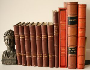 Pitié pour les femmes 1936, 4. Henri de MONTHERLANT : Les jeunes filles 1936, 5. Joseph PEYRE : L'homme de choc 1936, 6. Edouard PEISSON : Mer Baltique 1936, 7. C.-F. RAMUZ : Derborence 1936 + 8. Georges DUHAMEL : Le Japon illustré de 60 reproductions photographqiues (envoi sur carton de l'Académie Française signé) + 9. François MAURIAC : Le feu sur terre 1951, sous emboîtage + 10.STENDHAL : Le Rouge et le Noir, 1922, Crès, vignettes de QUINT + 11. VOLTAIRE : Candide, illustrations de BRUNELLESCHI, 1933, papier vélin de Navarre