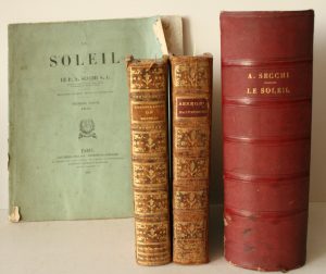1. A. SECCHI : Le soleil 1875, Texte et atlas, 2. MENTELLE : Cosmographie élémentaire, Paris 1785, planches, 3. DELALANDE : Abrégé d'Astronomie, Paris 1774, planches