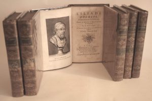 HOMERE: Œuvres (L'Iliade et l'Odyssée), traduction de BITAUBE, à Paris, 1780, complet en 6 volumes, frontispice au premier tome, plein veau de l'époque, tranches dorées
