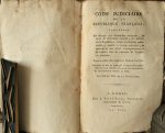 Série de 14 volumes du "Code Judiciaire de la République Française depuis le 4 août 1789 jusqu'au 11 Nivôse de l'an VIII", à Nismes chez la Veuve Belle, 1789 à 1791 puis de l'an IV à l'an VIII + Convention Nationale 1792-1793 + Assemblée...