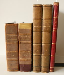 1. Dictionnaire géographique universel, Bruxelles 1837, cartes (dos décollés), 2 volumes, 2. Bibliophile JACOB : Nouvelle histoire de France illustrée, 2 volumes, 3. DELAMARCHE : Atlas de géographie, Paris 1852