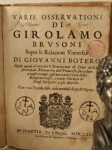 Giovanni BOTERO : Varie osservationi di Girolamo BRUSONI. Sopra le Relazioni Universali di Giovanni BOTERO. Nelle quali si toccano le Revolutioni di stato delle piu pricipali Monarchie dell' Uniureso (…) con una Tavola delle cose notabili di quest...