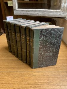 monumens anciens et modernes ; la notice de toutes ses institutions, tant civiles que religieuses, et, à chaque période, le tableau des moeurs, des usages et des progrès de la civilisation. Paris, Guillaume, 1821-1822. 7 vol. in-8, demi-chagrin vert époque. Edition originale publiée sans atlas. [Non collationné].