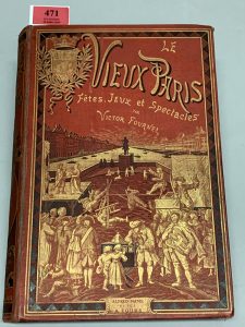 * [Paris]. FOURNEL (Victor). Le vieux Paris. Fêtes, jeux et spectacles. Tours, Mame, 1887. Grand in-8, cartonnage éditeur toilé rouge, titre et décor en noir et or au dos et au plat sup., tranches dorées (dos passé, coins émoussés).