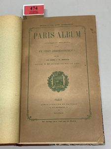 * [Paris]. LESPES, BERTRAND. Paris-Album. Paris, s.d. (vers 1850). In-8, demi-percaline brune à la bradel, pièce de titre bleue, fleuron dorés, couv. conservée (rousseurs éparses).