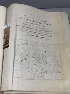 In-folio, reliure moderne demi-chagrin noir à coins, dos ancien remonté portant le titre doré et la date de 1795, et des fleurons dorés (gardes renouvelées, infimes restauration en marge de certaines feuilles). Cet important atlas peu commun est composé de 72 feuilles et d'une demi-feuille montée à clair, portant le titre " Atlas du Plan général de la Ville de Paris " et un tableau d'assemblage colorié. La planche 70 offre le plan des opérations de trigonométrie menées sur Paris. La planche 16 comporte le titre général, qui mentionne l'ouvrage " parachevé en 1791 ". Exemplaire sur lequel la Seine et certains points d'eau ont été aquarellés ; tiré sur des papiers vergés variés, tant de Hollande que français, certaines feuilles azurées ; la plupart des marges ont été conservées. (Boutier, 369).