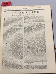 * [Provence]. Le courrier. Du mardi 20 mai 1755 (XL) au mardi 30 décembre 1755 (CII). [Avignon]. In-4, veau brun époque (rel. usée dont accidents en tête du dos, coupes rongées). Rare périodique local du XVIIIe siècle. Avec une table...