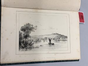 titre, défauts et bruniss. dans les marges des pl. montées à l'envers). Première édition illustrée, en partie originale, offrant 10 planches en lithographie et une grande carte dépliante du Rhin. (Carteret I, 412). Ex-libris moderne doré sur cuir Etienne Cluzel.