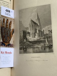 et topographique. Darmstadt, Gustave George Lange ; Paris, Scriba frères, 1854. 2 vol. fort in-8, demi-maroquin fauve à coins, dos à 5 nerfs, caissons ornés, étiq. de titre et de tomaison noires (frottements, lég. émoussés ; rousseurs, qq. déchirures en marge, qq. pl. déreliées). Illustré de 318 [sur 321] gravures hors texte sur acier dont 2 frontispices. Edition originale de cet ouvrage qui constitue un panorama complet des bords du Rhin (Allemagne, Suisse, Pays Bas, Alsace, Autriche, Liechtenstein). Ex-dono manuscrit