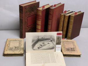 passé). - MANGIN (Arthur). Voyages et découvertes outremer au XIXe siècle. Tours, Mame, 1875. In-4, demi-chagrin rouge, dos orné, tranches dorées (coins émoussés, rousseurs éparses). - TISSOT (V.), AMERO (C.). Les contrées mystérieuses et les peuples inconnus. Paris, Firmin-Didot, 1884. In-4, demi-chagrin rouge à coins époque, double filets dorés, dos à nerfs, caissons ornés, tête dorée (un coin plié, une carte fendue sans manque). Illustré de 6 grandes cartes dépliantes hors-texte, 277 gravures dans le texte dont 54 à pleine page. - JACOBS, EYRIES. Voyage en Asie et en Afrique Paris, Furne, Jouvet, s.d. Grand in-8, demi-basane fauve époque, dos lisse (dos et coupes frottés, 2 coins émoussés ; rousseurs). Illustré de 25 planches et de 2 grandes cartes dépliantes en couleurs (1 carte déchirée sans manque). - POITOU (Eugène). Un hiver en Egypte. Tours, Mame, 1860. In-8, demi-chagrin fauve époque, tranches dorées (rares rouss.). Illustré de 32 planches gravées sur bois. - ARAGO (François). Souvenirs d'un aveugle. Voyage autour du monde. Paris, Lebrun, [1842-1843]. 2 vol. in-8, demi-chagrin fauve époque (dos passés, qq. rouss.). Amplement illustré de gravures sur bois dont 25 hors-texte. - [BUFFON]. Le Buffon classique de la jeunesse. Soc. de Paris, 1837. 2 vol. in-8, cartonnage éditeur illustré, tranches marbrés (cartonnages usés, rousseurs sur les planches). Illustré de 50 planches en lithographie, num. 1-49 et 32bis. Soit 9 volumes.