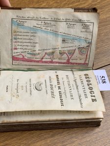BOUBÉE (Nérée). Géologie élémentaire appliquée à l'agriculture et à l'industrie avec un dictionnaire des termes géologiques ou manuel de géologie. Paris, chez les principaux libraires, 1838. Petit in-12, basane mouchetée, roulette dorée,...