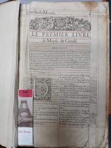 la fin. Trois parties : 548 f. (Ancien Testament), 94 f. (Apocryphes), f. 1 à 164 (Nouveau Testament, incomplet de la fin). Illustrée de quelques planches gravées sur bois.