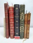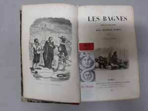 types, moeurs, mystères. Edition illustrée. Paris, Havard, 1845. Grand in-8, demi-basane rouge époque, dos à nerfs, auteur, titre et fleurons dorés (frottements, rousseurs, qq. ff. brunis avec mouillure marge en tête). 30 gravures hors-texte, dont 4 coloriées, et de nombreuses illustrations dans le texte, le tout gravé sur bois. - LAMOTHE (Alexandre de). Mémoires d'un déporté à la Guyane française. Blériot, 1879. In-12, broché (couv. et dos renforcés d'adhésif). - LASSALLE (Albert de). L'hôtel des haricots, maison d'arret de la Garde Nationale de Paris. Paris, Dentu, (vers 1870). In-8, demi-chagrin citron époque, dos lisse orné (dos bruni, 2 coins frottés, taches). Illustré de 70 dessins d'Edmond Morin. - AYMÉ. Déportation et naufrage Paris, Maradan, (vers 1810). In-8, cartonnage post. marbré à la bradel, pièce de titre basane havane (qq. salissures marginales). - JOHANNOT. PELLICO (Silvio). Mes prisons. Paris, Charpentier, 1843. Petit in-4, demi-chagrin vert bouteille époque, dos lisse, fers romantiques, couv. conservée (rel. frottée, dos passé, coins émoussés, des cahiers déréglés, qq. rouss. et saliss.). - LABOURIEU. Les mémoires d'un déporté. Paris, Faillard, (vers 1860). In-4, demi-basane rouge époque, dos lisse (coins usés, taches aux plats). Soit 7 volumes.