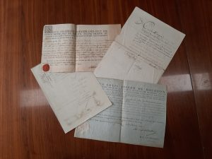 nationale. L.A.S. in-4 de remerciements du 27 brumaire an 8. - ALQUIER (Charles-Jean-Marie), avocat, magistrat, maire de La Rochelle, député de la législative, et de la Convention. Apostille autographe signée de 23 lignes du 11 brumaire an 6, en qualité de membre du Conseil des Anciens, en marge d'une pétition du Citoyen Rathelon qui a servi 35 ans dans l'armée et qui n'a rien touché de sa pensin. In-folio, de 2p. signée par 6 autres personnalités. - BERNARD DES JEUZINES (André-Antoine), dit Bernard de Saintes, magistrat, député de la Charente-Inférieure à l'Assemblée législative et à la Convention. Sa signature en qualité de président du Comité de Sureté générale et de Surveillance sur une feuille in-4 d'écrou du 27 février 1793 contre le Citoyen Deval prévenu d'émigration. Cachet de cire rouge. - COUHEY (François), avocat, député des Vosges à la COnventin. Apostille autographe signée de recommandation de 2 lignes sur une demande congé de Joseph Dumont, maréchal de l'armée du Rhin, pièce manuscrite in-4 de 4p. datée du 8 messidor an 3 signée par 12 autorités locales. - DUBOIS DE CRANCE(Edmond Louis Alexis, dit DUBOIS-CRANCE), général, député aux Etats-généraux, élu des Ardennes à la COnvention, Ministre de la Guerre. Sasignature sur l'acte de nomination du citoyen Salamou chef de bataillon de l'Armée des Alpes. In-4, manuscrit, datée du 24 juillet 1793, cachet de cire rouge. - DELACROIX DE CONTAUT (CHarles-François), avocat, député de la Marne à la COnvention, élu au COnseil des Anciens sous le Directoire, ministre des Relations extérieures. Père du peintre Eugène Delacroix. 3 pièces signées dont une lettre autographe in-4, datée du 21 pluviôse an 3, en qualité de Représentant du peuple en mission dans le département de Seine et Oise, adressée au citoyen Boucher pour lui demander de venir retirer deuxpaquets. Une pièce in-4 imprimée avec sa signature autographe en qualité de Ministre des relatins extérieures, adressée au citoyen Rivals, envoyé de la République française à Hesse Cassel pour respecter les règles de comptabilité en matière d'emprunt et d'avances. Ornée d'une vignette d'en-tête à l'effigie de la République. Lettre manuscrite in-folio avec sa singature autographe en qualité de Ministre des relatons extérieures, adressée au citoyen Rivals, ministre plénipotentiaire de la République française à Cassel, datée du 23 messidor an 5 pour lui demander de s'informer des dispositions de la baronne de Kriegsheim à l'égard de la nièce la veuve Baulèle qui est dans le besoin. - GUFFROY (Armand-Benoît-Joseph), député du Pas-de-Calais à la Convention. Apostille autographe favorable signée de 20 lignes, datée du 29 pluviôse an 3, en marge d'une L.A.S. in folio, de 2p. par Trouille, chef de bataillon qui demande le remplacement de deux chevaux qui lui ont été pris à l'occasion de son arrestation, reconnue comme arbitraire. - LALOY (Jean-Nicolas), député aux Etats-généraux, maise de Chaumont, élu député-suppléant de la Haute-Marne à la Convention, préfet de l'Aube. L.A.S in-4 adressée à Creuzat, inspecteur à l'octroi, pour llui demander de confier au citoyen Mongin, qui est épuisé par un excessif travail de nuit "un emploi plus doux, plus digne de son âge et de ses anciens services, tel que celui d'employé pour l'Ile Louviers, ou le port de la Grenouillère..." - LE TOURNEUR (Etinne-François-Louis-Honoré, dit Le Tourneur de la Manche), général, député de la Manche à l'Assemblée législative et à la Convention, nommé préfet de Loire-Inférieure en 1800, puis conseiller à la Cour des comptes. Lettre manuscrite in-4, adressée au Maire de Nozai, avec sa signature autographe en qualité de préfet, datée du 28 ventôse an 10, pour l'assurer qu'il fait tous ses effort spour que le service des Convois militaires, qui est interrompu faute de fonds, puisse reprendre. 2. [Révolution] [Culte]. 2 pièces manuscrites. - Application de la Constitution Civile du Clergé de 1790. Manuscrit in-12 de 32p., d'époque révolutionnaire intitulé Conduite qu'ont tenue les ecclésiastiques de la ville du Mans relativement à la soumission. "les ecclésiastiques de la ville du Mans ont toujours montré une soumission de fait aux loix de la rép. Aujourd'hui on demande d'eux qu'ils déclarent cette soumission au greffe des municipalités, ilsont jugé que la forme de cette déclaration exigée n'étoit point contraire aux principes de la foy sur l'autorité spirituelle de l'église catholique et ont signé lad. formule". Suit le développement par demandes et par réponses de tous les arguments en faveur de cette soumission, qui battent en brèche les inconvénients pratiques et objections théoriques qui peuvent être soulevés, un des plus longuement exposés étant celui du "mariage au nom de la loi". Quant aux inconvénients qui résulteraient du refus de soumission ce sont : une nouvelle scission dans le clergé et les fidèles, le rique de devoir déporter ou d'enfermer pour toujours les insoumis, de considérer leurs fidèles commeennemis de l'Etat, etc. Avec cette conclusion : "Donc il est de la prudence et de la sagesse dans les circonstances du jjour de se déclarer en faveur de la soumission pure et simple. - Recettes et rémunération des ministres du culte de Fougères. Double feuille in-folio manuscrite, signée Desheyes, contenant l'état des recettes et dépenses de la quinzaine, au 15 mars 1791, relatives au culte pour le district de Fougères. Une quarantaine de vicaires et curés, nommément désignés sont concernés pour les cantons de St Georges, Fleurigné, Louvigné, Fougères, St Brice, St Marc le Blanc, Billé. 3. [Révolution] [Bordeaux]. Ensemble de 6 lettres, proclamations et décrets in-4 : - Lettre du Roi pour la convocation des Etats-Généraux, à Versailles, le 27 avril 1789. Imprimerie Royale, 12p. (non rogné. - Acte du Corps Législatif [...] qui 