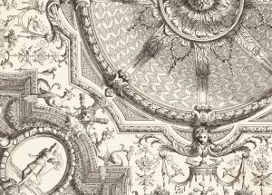 REFERENCE : Guilmard, p. 102, n° 47 Légères salissures sur le titre Jean Lemoyne (1638-1713) était un des peintres du roi Louis XIV et valet de chambre de Monseigneur le duc d'Orléans. Peu de peintures sont connues de lui. On connait en revanche trois suites de panneaux qu'il a réalisés. Il a participé à la décoration de la galerie d'Apollon du Louvre et au grand appartement du roi au château des Tuileries (1670-1677). La suite de demi plafonds, dédiée au frère du roi, présente des dessins de Lemoyne, gravés et édités par lui-même à Paris vers 1698. Gaspard Duchange (1662-1757) a fait une seconde édition en ajoutant son nom sur la planche de titre. Les dessins offrent des superbes compositions, les panneaux centraux sont restés vides et entourés de riches bordures avec figures allégoriques, paysages et ornements parfaitement représentatifs de la seconde partie du règne de Louis XIV