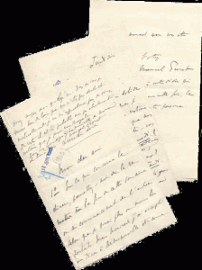 d'onglet au verso. — • 2. 1 p. 1/2 in-8 ; date de réception du 13 juin 1903 au composteur, apostille autographe du destinataire, «récrit avant souper - pas dîner». • 3. 4 pp. in-8 ; date de réception du 16 juin au composteur, sans millésime ; apostille autographe du destinataire, «r[e]ç[u] rép[ondu]» ; trace d'onglet couvrant plusieurs mots qui demeurent visibles par transparence.