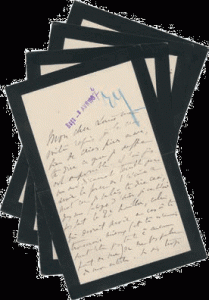 • 1. - S.l., [date de réception du 3 avril 1907]: «Mon cher Louis, me voilà repris, je le crois bien, de crises pires encore ; te dire ce que je souffre est impossible. J'ai pris un médicament terrible pour avoir la force de t'écrire ce mot, car je voulais te dire ceci ; dans ma fatigue d'hier, je ne t'ai pas fait le 2e brouillon, celui qui devrait servir au cas où tu trouverais mieux (et tu n'aurais peut-être pas tort à aucun point de vue) de ne pas parler de mon article. Je suis trop brisé par ce nouvel assaut pour le faire, ce brouillon.