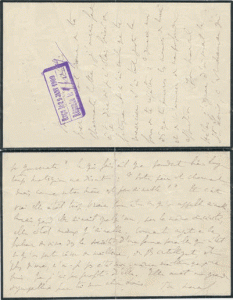 «Mon cher Louis, merci de tout coeur de ta charmante lettre, j'aurais fort à te dire si je n'étais brisé de fatigue et n'ai voulu que te remercier. J'ai tout juste la force de te répéter: "donnemoi dès que tu pourras les mesures du bureau", et de t'assurer de ma profonde affection... Hélas, j'ignore d'où venait le s[ain]t Louis, c'est maman qui l'avait trouvé, si je ne confonds pas. Du reste, cela n'avait aucune espèce de valeur, ce n'était qu'habilement truqué et amusant pour q[uel]q[u]'un qui aime cette époque. Si je peux sortir, je tâcherai de trouver sculpture ou vieux portrait en st Louis plus intéressant. Tu sais que c'est mon grand saint parce puisqu'il est le patron de mon cher ami. L'abat-jour dont tu me parles était aussi bien peu de chose. Mais je l'aimais parce que c'est maman qui s'en était occupé. Et puis il me rappelle par contraste un trait de sa franchise qui était admirable.