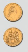 MÉDAILLE EN OR : Mariage du Dauphin Louis Auguste avec Marie-Antoinette d'Autriche, 1770, gravée par : “RÖETTIERS FILS” ;diamètre 34,5 mm, poids 33 g.