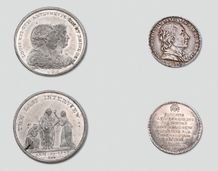 UNE MÉDAILLE EN ÉTAIN : Louis XVI et Marie-Antoinette (la dernière entrevue) : “THE LAST INTERVIEW - JAN. 20. 1793”, gravée par: “W. M. F.” ; diamètre 38 mm (référence H. 464) et une médaille en argent à l'effigie de Guillotin,...