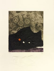 Antoni Clavé (1931-2005) Suite de 5 planches. 1976. Comprenant 3 lithographies (Papier froissé, Feuille rouge et Gant) et 2 gravures au carborundum (Signes ; Trois points). Parfaites épreuves imprimées en couleurs sur vélin fort, numérotées...