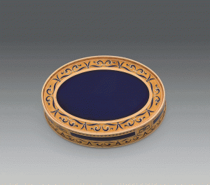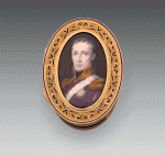 TABATIÈRE DE PRÉSENT ovale, en or, émaillée bleu, couvercle orné d'une miniature ovale représentant le portrait de François II d'Autriche, Empereur du Saint-Empire germanique, puis, sous le titre de François 1er, Empereur d'Autriche...