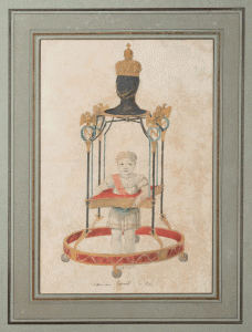 Tourcaty Jean-François (1763/...) Le Roi de Rome à l'âge de deux ans faisant ses premiers pas à l'aide d'un trotteur; dessin aquarellé, signé et daté : “Tourcaty... 1812”; il porte le grand-cordon de la Légion d'honneur et avance dans un...