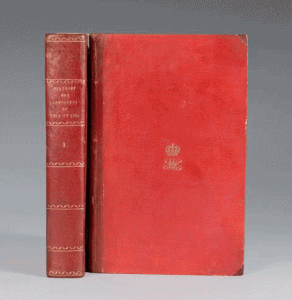 BEAUCHAMP (Alphonse de) — Histoire des campagnes de 1814 et de 1815. — Seconde partie. — Paris, Le Normant, 1817, 2 volumes in-8, demi-maroquin rouge à coins, dos lisse orné, chiffre sur les plats (reliure de l'époque).