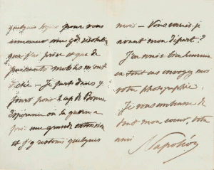 South Western Hotel, Southampton, [vers le 26 février 1879]. “Avant de quitter l'Angleterre, je tiens à remercier Votre Altesse Royale de l'intérêt dont elle m'a donné ces temps derniers tant de preuves. Je suivrai les bons conseils qu'elle veut bien me donner et je la prie de croire à ma reconnaissance qui ne finira qu'avec ma vie”...